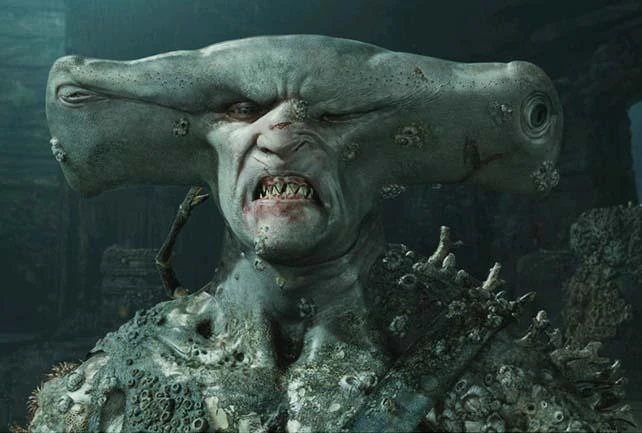 Tak jak w przypadku innych członków załogi Jonesa, Maccus powoli stawał się coraz mniej podobny do człowieka. Przede wszystkim jego głowa, pokryta bliznami, wyglądała jak głowa rekina młota. Miał zęby tak ostre jak u rekina. Podczas swojej bolesnej mutacji, jego lewe oko przesunęło się na lewy, górny róg młota. Ciało tego pirata było pokryte koralowcami, skorupiakami i rozgwiazdami, a jego lewe przedramię. Kilka par nóg homara wyrosło z jego pleców. Maccus był jednym z czterech najbardziej zaufanych członków załogi na pokładzie "Latającego Holendra, wraz z Ratlinem, Penrodem i Żabnicą. Był także świetnym szermierzem, co pokazuje w czasie walki o Skrzynię Umarlaka na Isla Cruces. Tam Maccus walczył z Elizabeth Swann, Pintelem i Ragettim. Jego główną bronią był topór abordażowy.